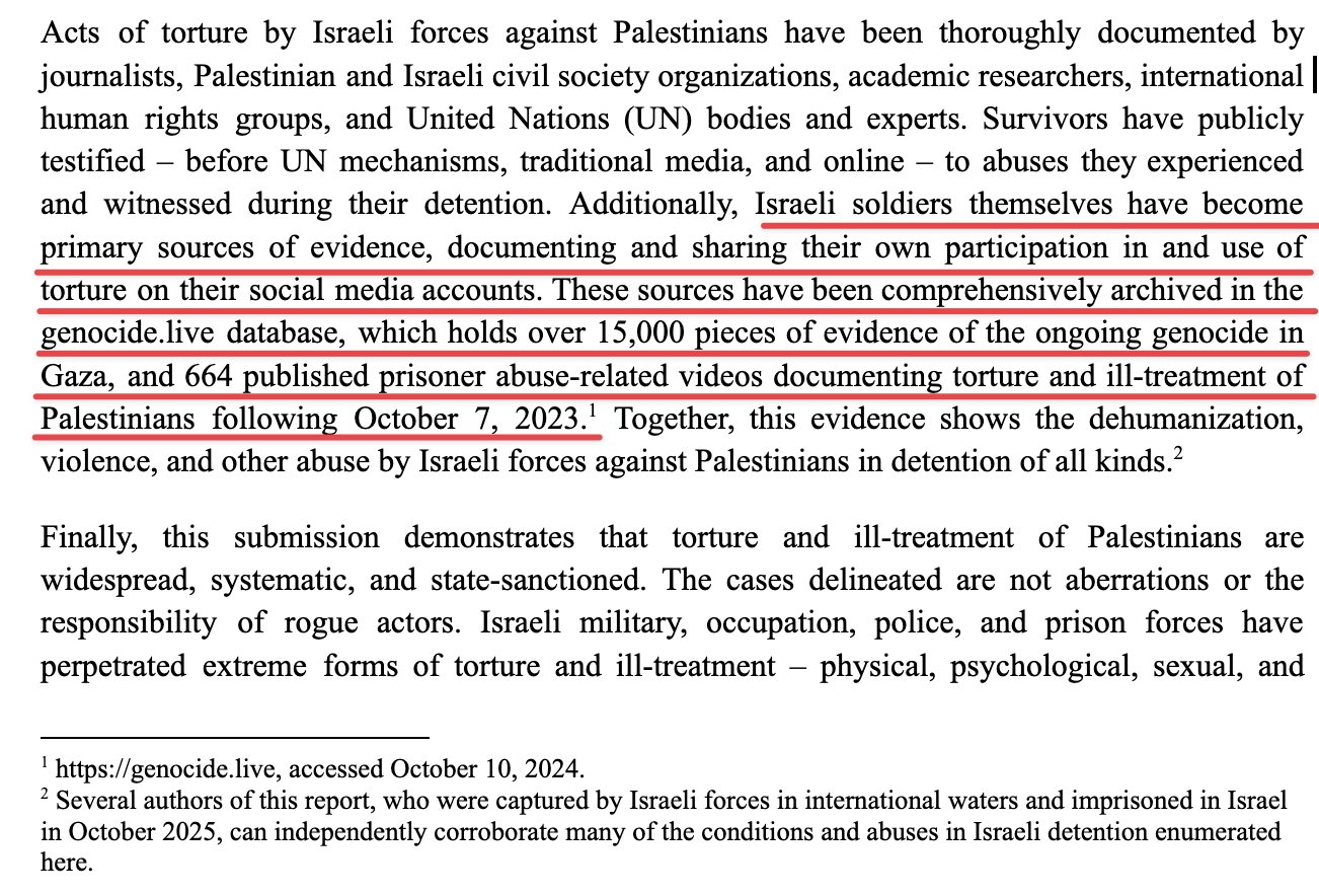 A citation of the Genocide.live archives in legal proceedings accusing Israel of war crimes and genocide in Gaza, provided by the site’s maintainer.