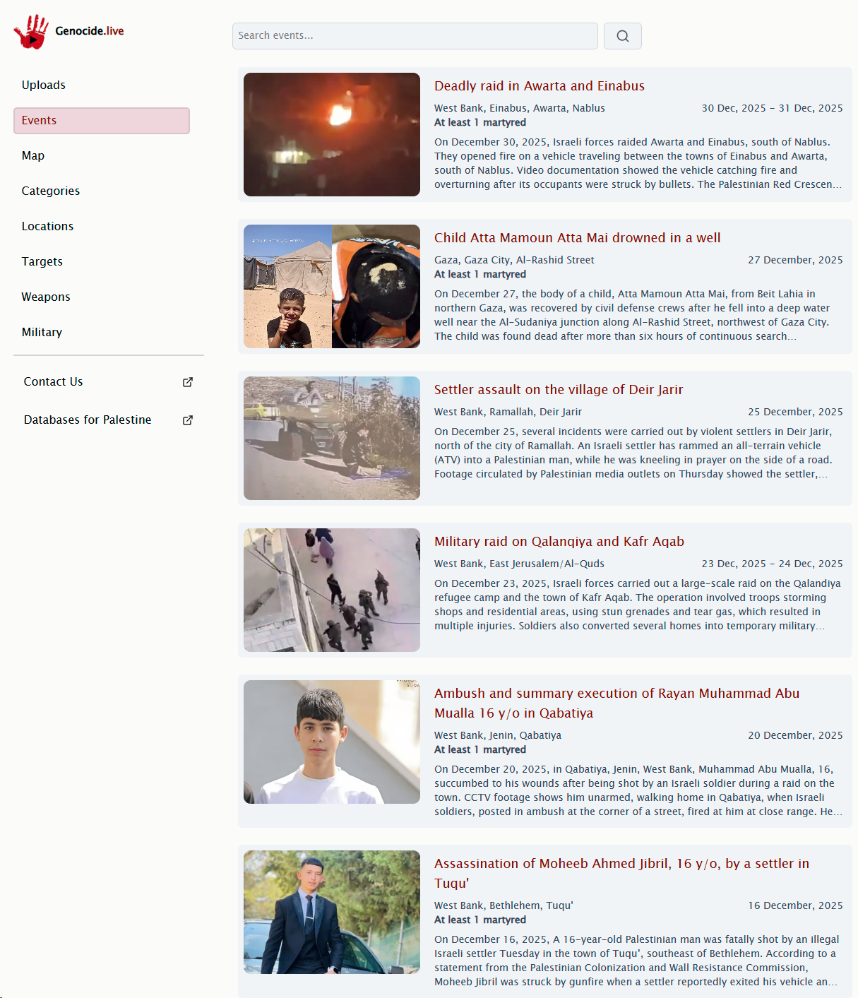 genocide.live events Published January 1, 2026 at 1215 × 1413 in Namecheap takes down domain hosting video archives of Israeli war crimes