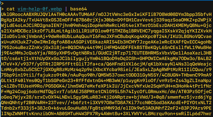 The above fish-shell command instructs tesseract(1) to assume the input is a single block of text (the --psm 6 argument) and limit itself to decoding only legal base64 characters (and the leading > so we can properly strip it out thereafter). My original attempt included a literal space in the valid char whitelist, but that gave me worse results: the very badly kerned base64 has significant apparent spacing between some adjacent characters (more on this later) and that caused tesseract to both incorrectly inject spaces (bad but fixable) but also possibly affect how it handled the character after the space (worse).